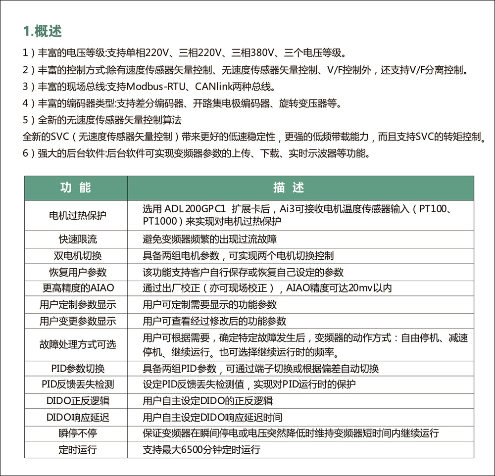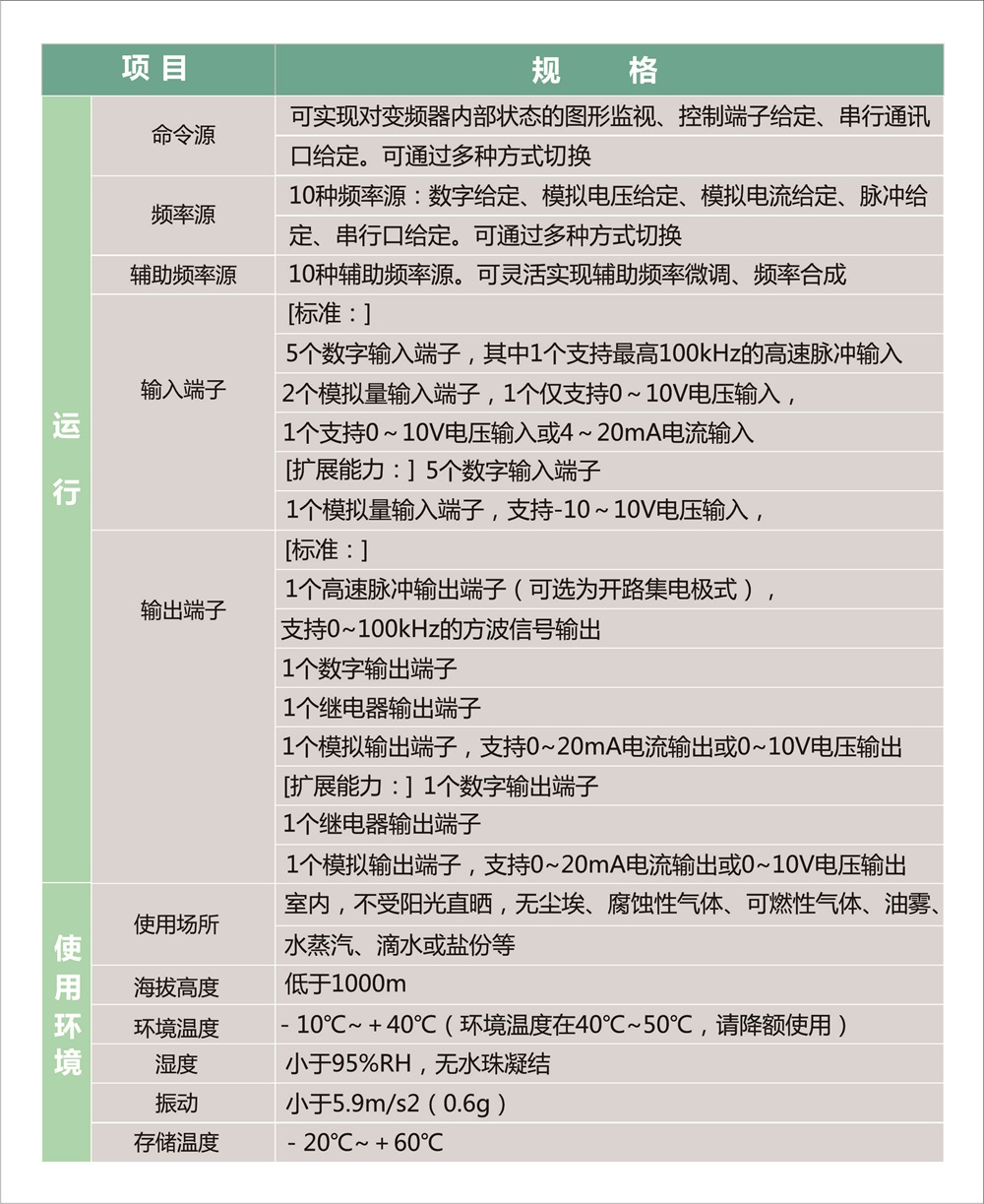 有丰富控制方式:速度传感器矢量控制、无速度传感器矢量控制、V/F控制外,支持V/F分离控制。